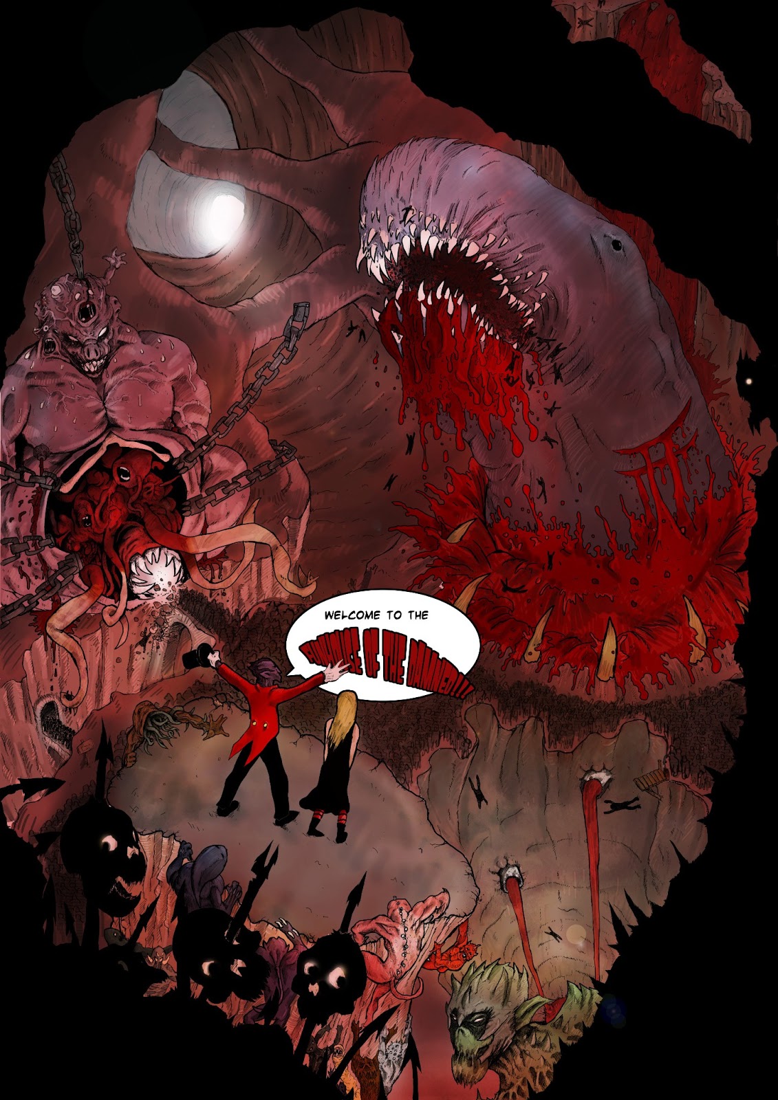 So I contacted Paul Cousins, an amazing artist I knew from back when I was writing for Night Warrior, and suggested the idea of a 5 page comic to bridge the gap between Monkey's Paw and Cabaret from Hell. This is the result (click the pages to make them go bigly)...